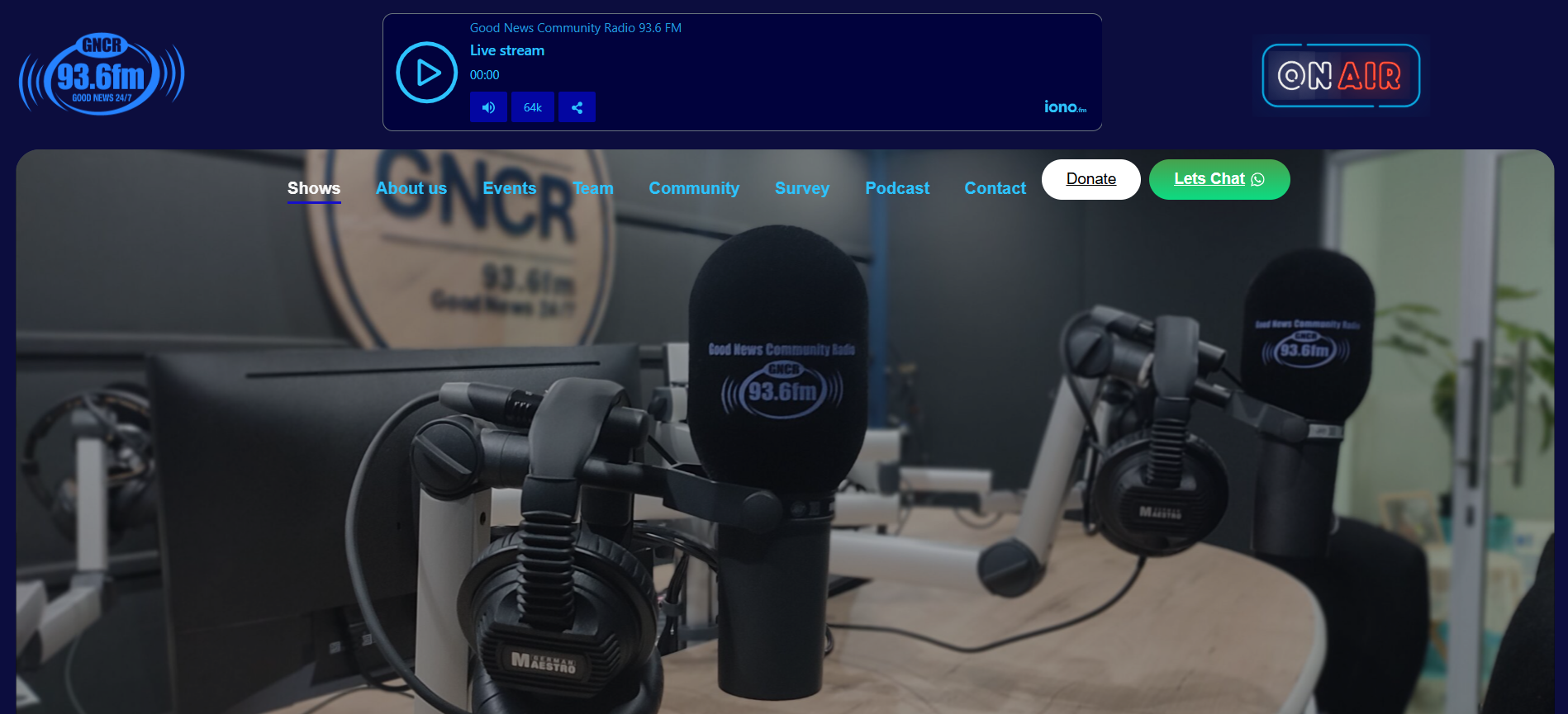 A faith-based community radio station platform built to support live broadcasting, programming, and audience engagement.